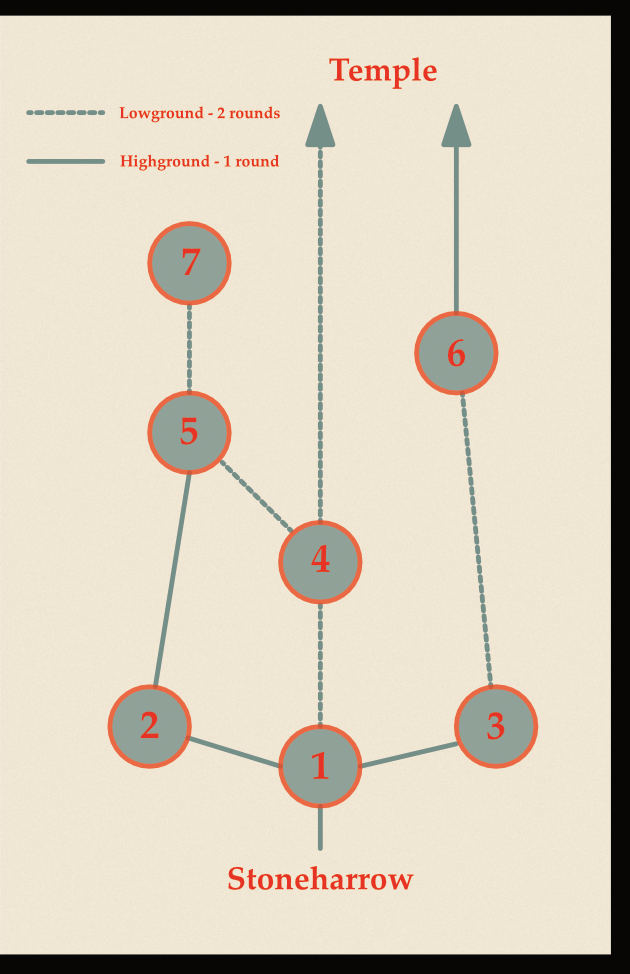 Incessant rains have caused the nearby woods surrounding Saint Witold’s temple to become marshland. The once prominent temple is sinking, and the villagers of Stoneharrow want the steeple bell and Witold’s remains for a new temple they plan to construct elsewhere.